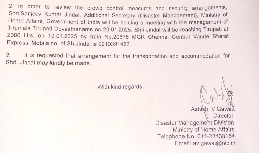ఇటీవల కాలంలో పవిత్ర పుణ్యక్షేత్రం తిరుమలలో వరుస ఘటనలు చోటు చేసుకున్నాయి. ఈనెల 8 వ తేదీన తిరుపతిలో తొక్కిసలాట జరిగింది.. ఆరుగురు భక్తులు మృతి చెందారు. ఆఘటన మరువక ముందే ఈనెల 13 వ తేదీన లడ్డు కౌంటర్లో అగ్ని ప్రమాదం జరిగింది. దీంతో రెండు వరుస ప్రమాదాలతో తిరుమలలో భక్తుల భద్రత, క్రౌడ్ మేనేజ్మెంట్ వంటి అంశాలపై దేశ వ్యాప్తంగా ఆందోళన నెలకొంది. తిరుమల పుణ్యక్షేత్రంకు దేశ విదేశాల నుంచి పెద్ద ఎత్తున భక్తులు తరలి వస్తారు. ఇలాంటి ప్రదేశంలో జరగరాని సంఘటనలు జరిగితే రాష్ట్ర ప్రభుత్వానికే కాదు కేంద్రానికి చెడ్డపేరు వస్తుంది. దీంతో తిరుమలలో చోటు చేసుకున్న ఘటనలపై కేంద్రం కూడా సీరియస్ గా స్పదించింది. ఇటీవల జరిగిన రెండు ఘటనలపై టిటిడిని ఇప్పటికే నివేదిక కోరిన కేంద్రం మరో కీలక చర్య చేపట్టింది. తిరుమలలో భద్రత, క్రౌడ్ మేనేజ్ మెంట్ విషయాలలో టిటిడి ఎటువంటి చర్యలు చేపడుతోందనే అంశంపై స్వయంగా కేంద్ర ప్రతినిధులే పరిశీలించనున్నారు. దీంట్లో భాగంగా రేపు కేంద్ర హోంశాఖ అడిషనల్ సెక్రటరీ సంజీవ్ కుమార్ జిందాల్ తిరుమల చేరుకోనున్నారు. రేపు , ఎల్లుండి తిరుమలలో జిందాల్ పర్యటన ఉంది. పర్యటనలో భాగంగా ఘటనలకు గల కారణాలపై టిటిడి అధికారులతో జిందాల్ సమావేశం కానున్నారు. టిటిడి వ్యవహారాల్లో కేంద్రం జోక్యం చేసుకోవడం ఇదే తొలిసారి కావడంతో జిందాల్ పర్యటన చర్చనీయాంశంగా మారింది. గతంలో ఎన్నడూ లేని విధంగా తొక్కిసలాట వంటి ఘటన జరగడం ఏకంగా ఆరుగురు చనిపోవడంతో కేంద్రానికి టిటిడి వ్యవహారాల్లో జోక్యం చేసుకోక తప్పని పరిస్థితి వచ్చిందనే చర్చ జరుగుతోంది. కేంద్రం జోక్యం జిందాల్ పర్యటనతో ఆగుతుందా…? లేక భవిష్యత్తులో మరింత పెరుగుతుందా…? అనే చర్చ ఇప్పటికే ప్రారంభమైంది.