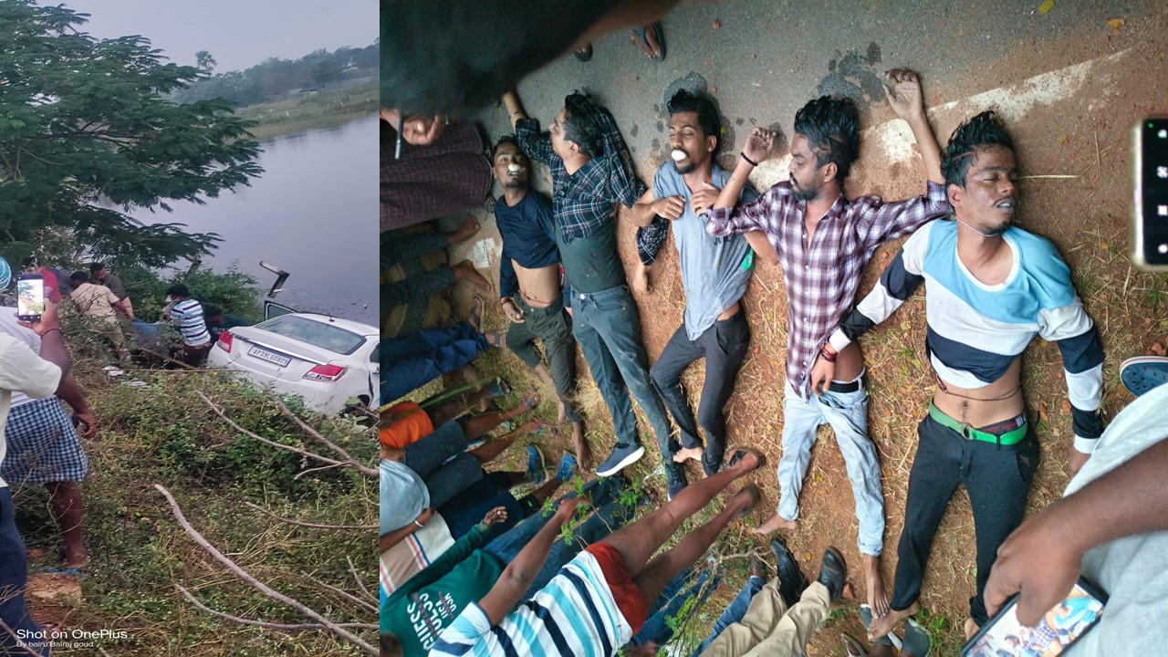 కారు అదుపుతప్పి చెరువులోకి దూసుకు వెళ్లడంతో ఐదుగురు యువకులు దుర్మరణం చెందారు. అత్యంత విషాదకర ఈ సంఘటన యాదాద్రి భువనగిరి జిల్లా భూదాన్ పోచంపల్లి మండలం జలాల్పూర్ లో జరిగింది. హైదరాబాద్ కు చెందిన హర్ష, దినేష్, వంశీ, బాలు, వినయ్ అనే ఐదురుగురు యువకులు ప్రయాణిస్తున్న కారు శుక్రవారం అదుపుతప్పి చెరువులోకి దూసుకు వెళ్లింది. ప్రమాదం జరిగిన సమయంలో కారులో ఆరుగురు ప్రయాణిస్తున్నారు. వీరిలో మణికంఠ అనే యువకుడు ఈ ప్రమాదం నుంచి బయటపడ్డాడు. మితి మీరిన వేగం వల్లే కారు అదుపుతప్పి చెరువులోకి దూసుకువెళ్ళినట్లు తెలుస్తోంది.