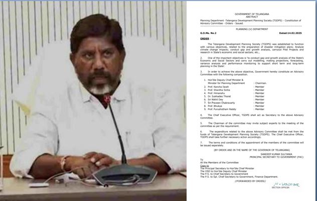 డిప్యూటీ సీఎం భట్టి విక్రమార్కతో పాటు.. మొత్తం తొమ్మిది మంది తెలంగాణ డెవలప్మెంట్ ప్లానింగ్ సొసైటీ సలహా కమిటీలో సభ్యులుగా ఉంటారు. రాష్ట్ర ఉప ముఖ్యమంత్రి, ప్రణాళిక శాఖా మంత్రి భట్టి విక్రమార్క మల్లు ఈ సలహా కమిటీకి అధ్యక్షుడిగా వ్యవహరిస్తుండగా.. ప్రొఫెసర్ కంచ ఐలయ్య, ప్రొఫెసర్ శాంతా సిన్హా, ప్రొఫెసర్ హిమాంశు, డాక్టర్ సుఖదేవ్ తొరాట్, నిఖిల్ దేవ్, ప్రవీణ్ చక్రవర్తి, ప్రొఫెసర్ భూక్య, ప్రొఫెసర్ పురుషోత్తం రెడ్డి సభ్యులుగా ప్రభుత్వం ఉత్తర్వులు జారీ చేసింది.