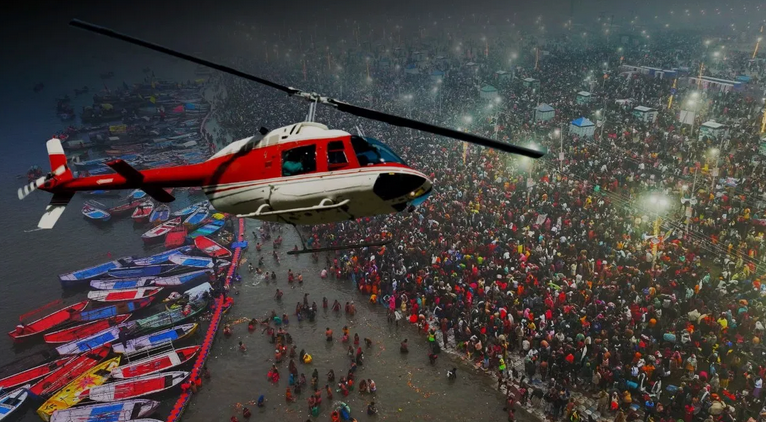 ఇలాంటి పరిస్థితుల్లో ఉత్తరప్రదేశ్ ప్రభుత్వం సరికొత్త ఆలోచనతో ముందుకు వచ్చింది. ప్రయాగ్రాజ్ ఎయిర్ పోర్టు నుంచి త్రివేణి సంగమం వరకు హెలికాప్టర్ సేవలు ప్రారంభిస్తున్నట్లు వెల్లడించింది. ఉత్తరప్రదేశ్ ఎకో టూరిజం డెవలప్మెంట్ బోర్డు, ప్లై ఓలా భాగస్వామ్యంతో ఈ హెలికాప్టర్ సేవలు ప్రారంభించారు. విమానం ద్వారా.. ప్రయాగ్రాజ్కు చేరుకునే భక్తులు.. అక్కడి నుంచి రోడ్డు మార్గం ద్వారా త్రివేణి సంగమానికి చేరుకోవడానికి వీలు లేకపోవడంతో హెలికాప్టర్ సేవలు ప్రారంభించారు. రోడ్డు మార్గంలో వెళ్తే.. ప్రస్తుతం ఉన్న ట్రాఫిక్ కారణంగా ముందుకు వెళ్లేందుకు గంటలకు గంటల సమయం పడుతోంది. అందుకే ఈ హెలికాప్టర్ సేవలతో కొంతయినా రోడ్లపై రద్దీ తగ్గుతుందని ప్రభుత్వం భావిస్తోంది.