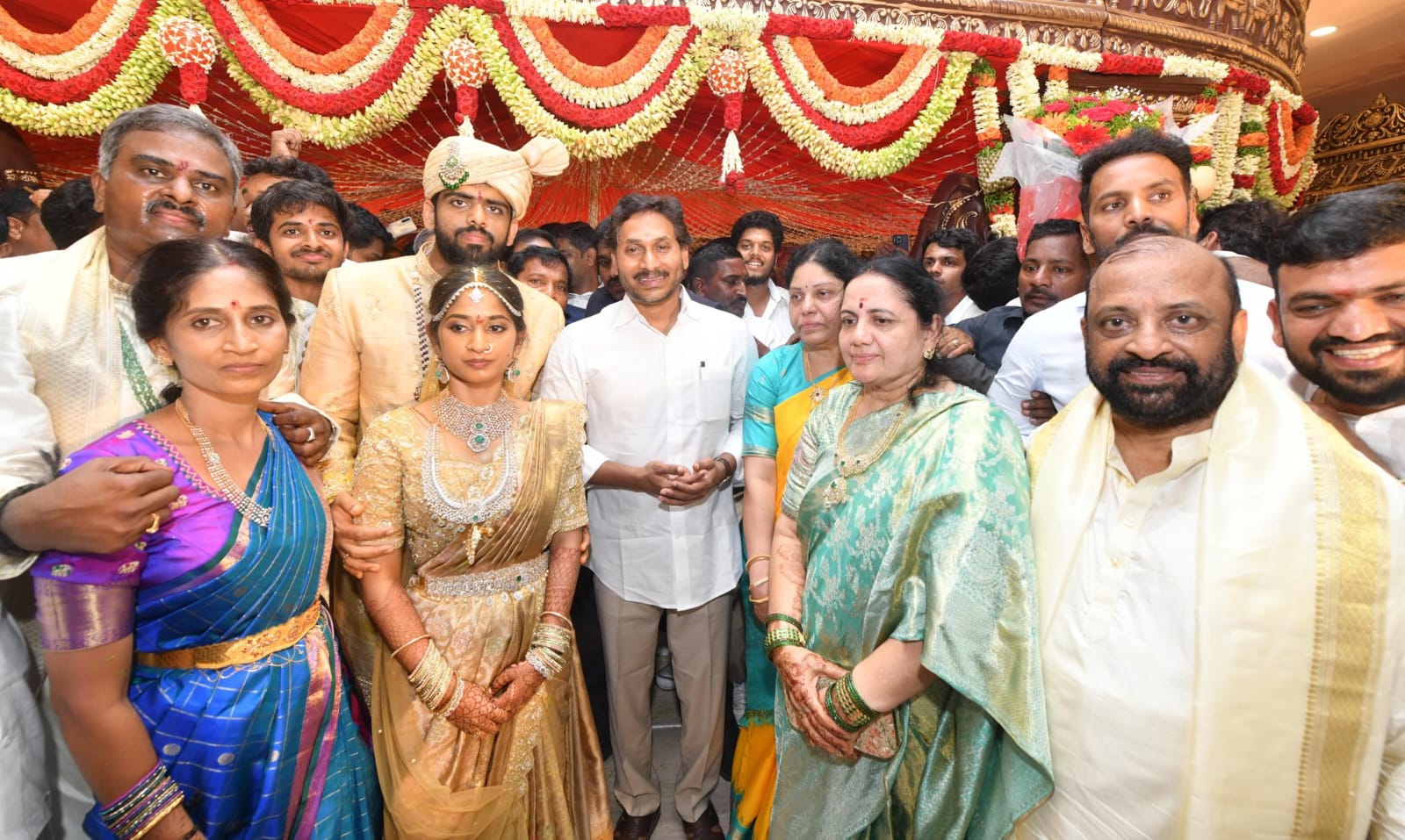 జగన్.. ఫంక్షన్హాల్కు చేరుకోగానే.. సందడిగా మారింది. జగన్ను చూసేందుకు, దూరం నుంచే ఫోటోలు తీసేందుకు పెళ్లికి వచ్చిన వాళ్లు, వైసీపీ శ్రేణులు, జగన్ అభిమానులు పోటీ పడ్డారు. అలాగే, ఆయనతో సెల్ఫీలు తీసుకునేందుకు కూడా ఉత్సాహం చూపించారు. కొద్దిసేపు ఆ పెళ్లి వేడుకలో గడిపిన వైఎస్ జగన్.. తర్వాత తిరిగి తాడేపల్లి బయలుదేరారు.