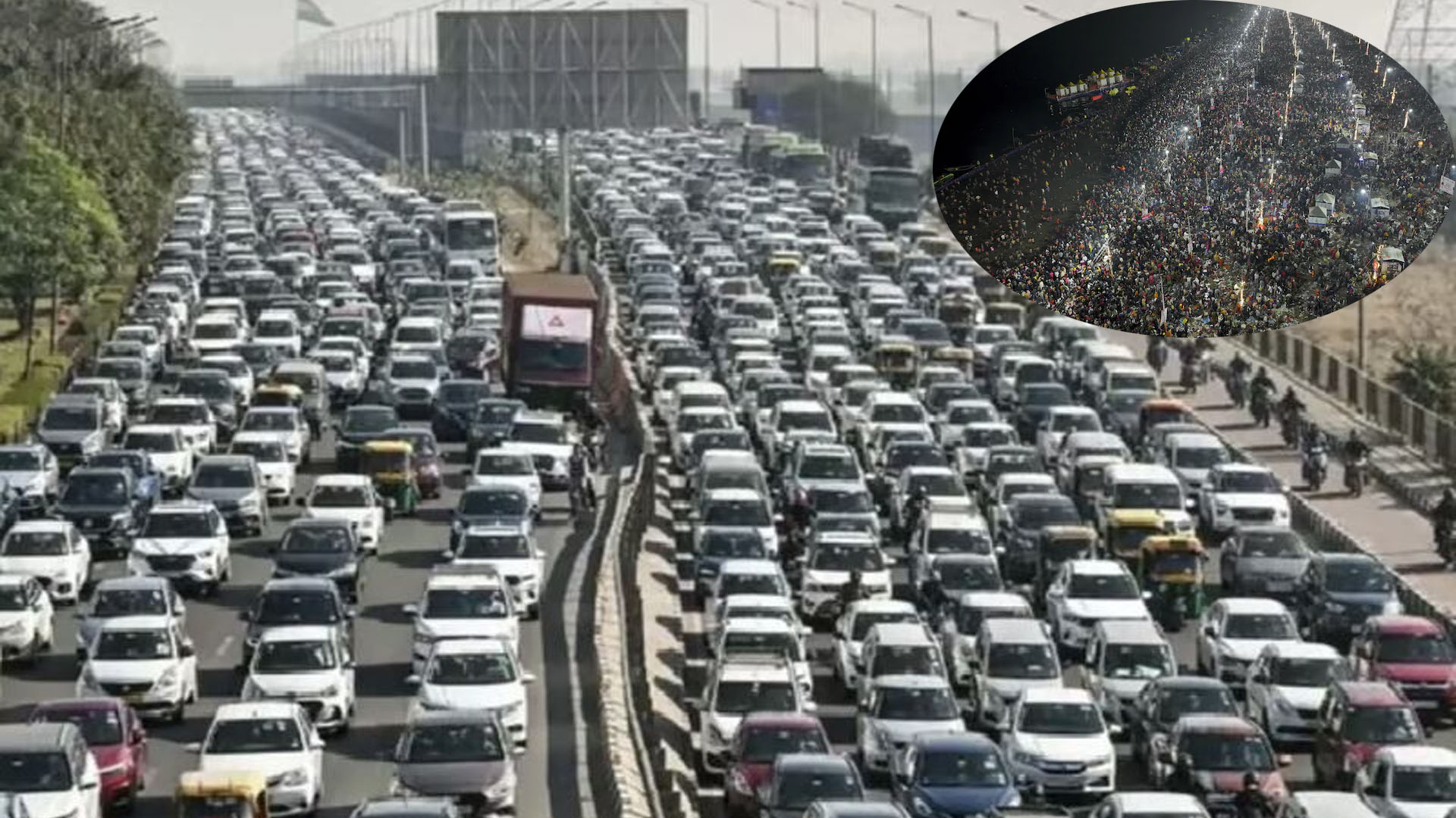 మహాకుంభమేళా జరుగుతున్న ప్రయాగ్రాజ్కు భక్తులు పోటెత్తుతుంటంతో ప్రయాగ్రాజ్ చేరుకునే అన్ని రోడ్డు మార్గాల్లో కిలోమీటర్ల మేర ట్రాఫిక్ జామ్ అయింది. 25 కిలోమీటర్ల మేర ఎక్కడికక్కడ ట్రాఫిక్ స్థంభించిపోయినట్లు అధికార వర్గాలు వెల్లడించాయి. ప్రయాగ్రాజ్కు దారి తీసే వారణాసి, లక్నో, కాన్పూర్, రేవా మార్గాలన్నీ వాహనాలతో కిక్కిరిసిపోయాయి. ప్రయాగ్రాజ్కు దారితీసే ఏడు ప్రధాన మార్గాల్లో ట్రాఫిక్ను 20 కిలోమీటర్ల ముందే నిలిపివేస్తున్నారు. దీంతో పుణ్యస్నానాలాచరించే సంగమ ప్రాంతానికి వెళ్లేందుకు భక్తులు కనీసం 20 కిలోమీటర్లు నడవాల్సి వస్తోందని తెలిసింది. రద్దీని నియంత్రించేందుకు అధికారులు మధ్యప్రదేశ్లోనే వాహనాలను నిలిపివేస్తున్నారు. కనీసం 50 వేల వాహనాలు ట్రాఫిక్లో చిక్కుకుపోయాయని అంచనా. 48 గంటలుగా ట్రాఫిక్లో చిక్కుకుపోయామని భక్తులు చెబుతున్నారు. ట్రాఫిక్లో చిక్కుకున్న వారి కోసం అధికారులు తాగునీరు, ఆహారంతో పాటు తాత్కాలిక వసతి ఏర్పాటు చేస్తున్నారు. ట్రాఫిక్ ను కొంత మేర అయినా నియంత్రించాలనే ఉద్దేశంతో ఫిబ్రవరి 14 వరకు ప్రయాగ్రాజ్ సంగం రైల్వేస్టేషన్ను మూసివేయాలని అధికారులు నిర్ణయించినట్లు సమాచారం. ఇంకా పదిహేను రోజులో మహాకుంభమేళా ముగియనున్న నేపధ్యంలో భక్తుల సంఖ్య రోజు రోజుకీ పెరుగుతోంది. ఇప్పటికే దాదాపు 41 కోట్ల మంది భక్తులు మహాకుంభమేళాలలో పాల్గొని పుణ్యస్నానాలు ఆచరించినట్లు ఉత్తరప్రదేశ్ ప్రభుత్వ వర్గాలు చెపుతున్నాయి.