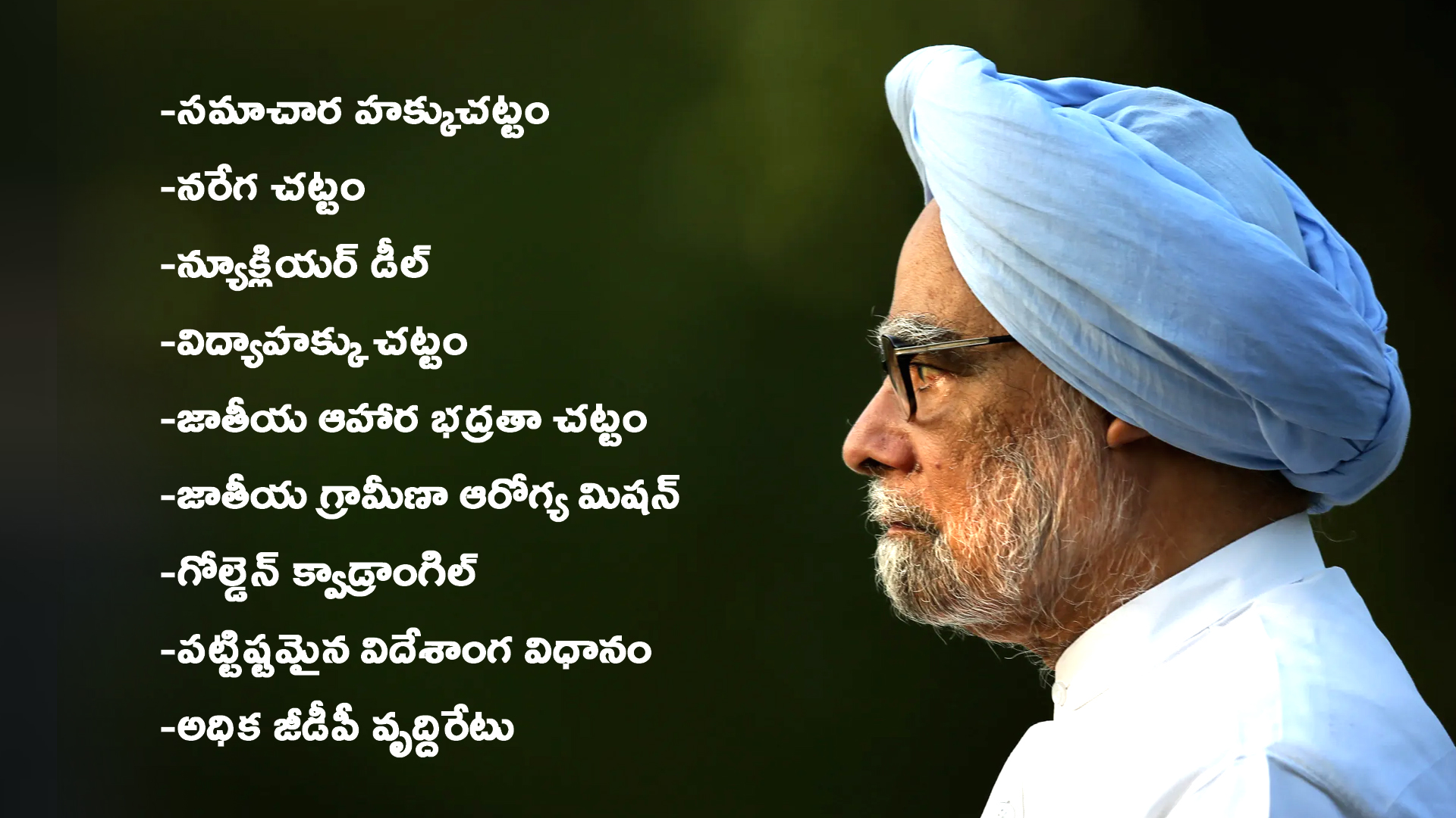 ఈరోజు సామాన్యుడు సైతం దేశ పాలనపై విస్తృతమైన అవగాహనతో ఉన్నాడని, విజిల్ బ్లోయర్ల సంఖ్యపెరిగిందని  గర్వంగా మనం చెప్పుకోవచ్చు. దీనికి ఆద్యుడు ఆ మౌన ముని మన్మోహనే. 2005లో తెచ్చిన సమాచార హక్కు చట్టంతో ఈరోజు ప్రభుత్వాల్లో అవినీతి బాగోతాలను పెకలించగలుగుతున్నాం. ఎక్కడ ఏం జరుగుతోందో తెలుసుకోగలుగుతున్నాం. విదేశాంగ విధానం, వాణిజ్యం కొత్తపుంతలు తొక్కింది. ఆయన ప్రభుత్వ హయాంలోనే ఎన్నో విప్లవాత్మక చట్టాలు వెలుగు చూశాయి.